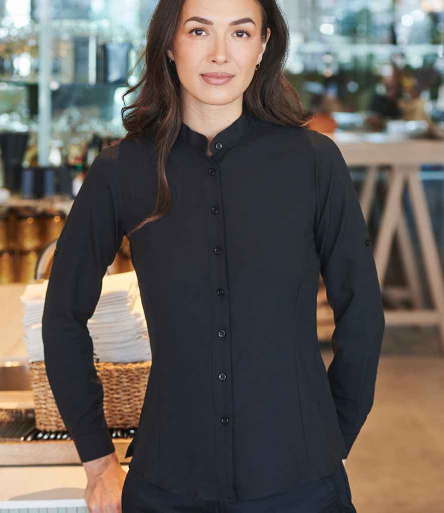 Henbury Ladies Mandarin Roll Sleeve Anti-Bac Wicking Shirt | Black